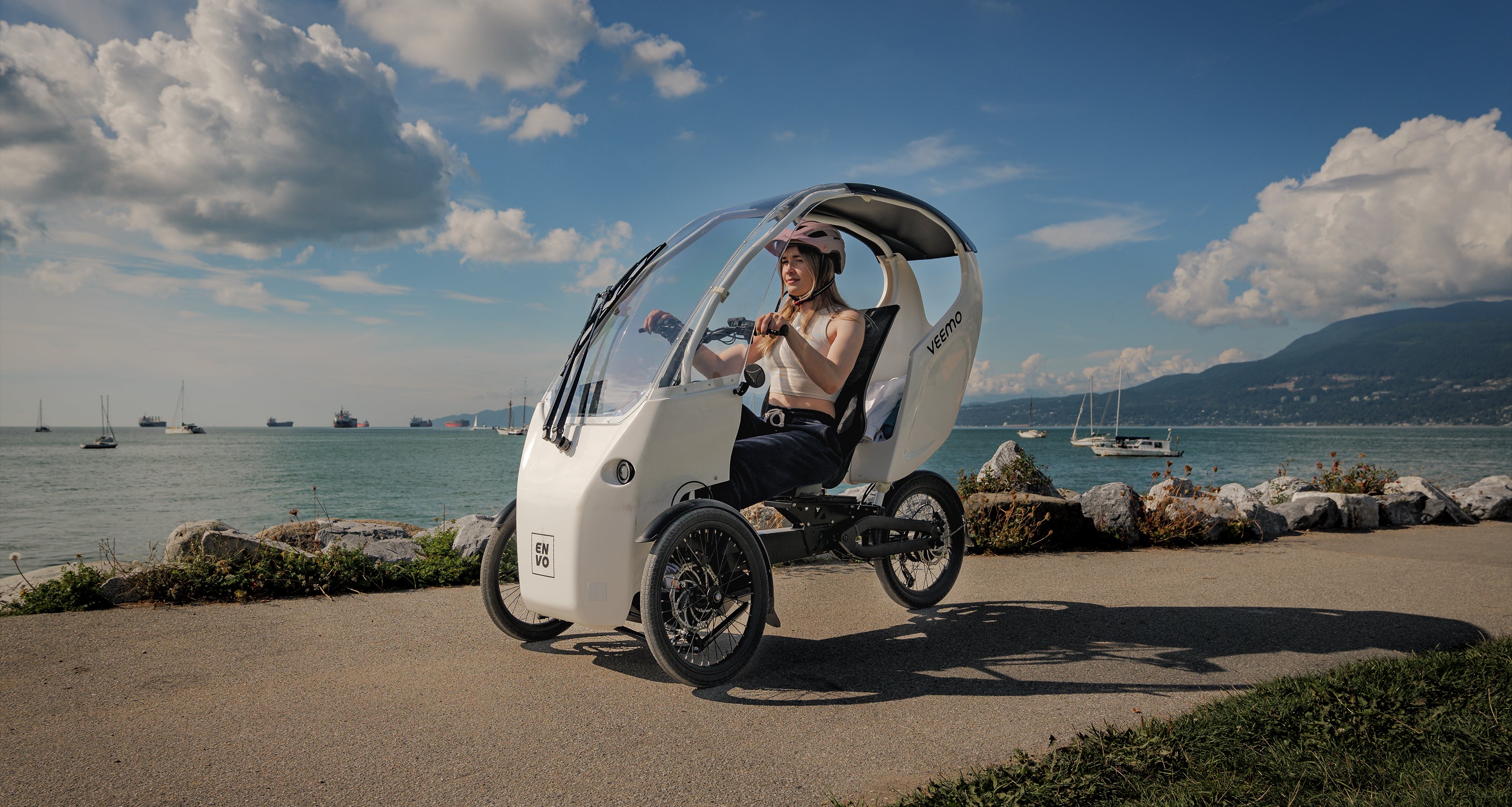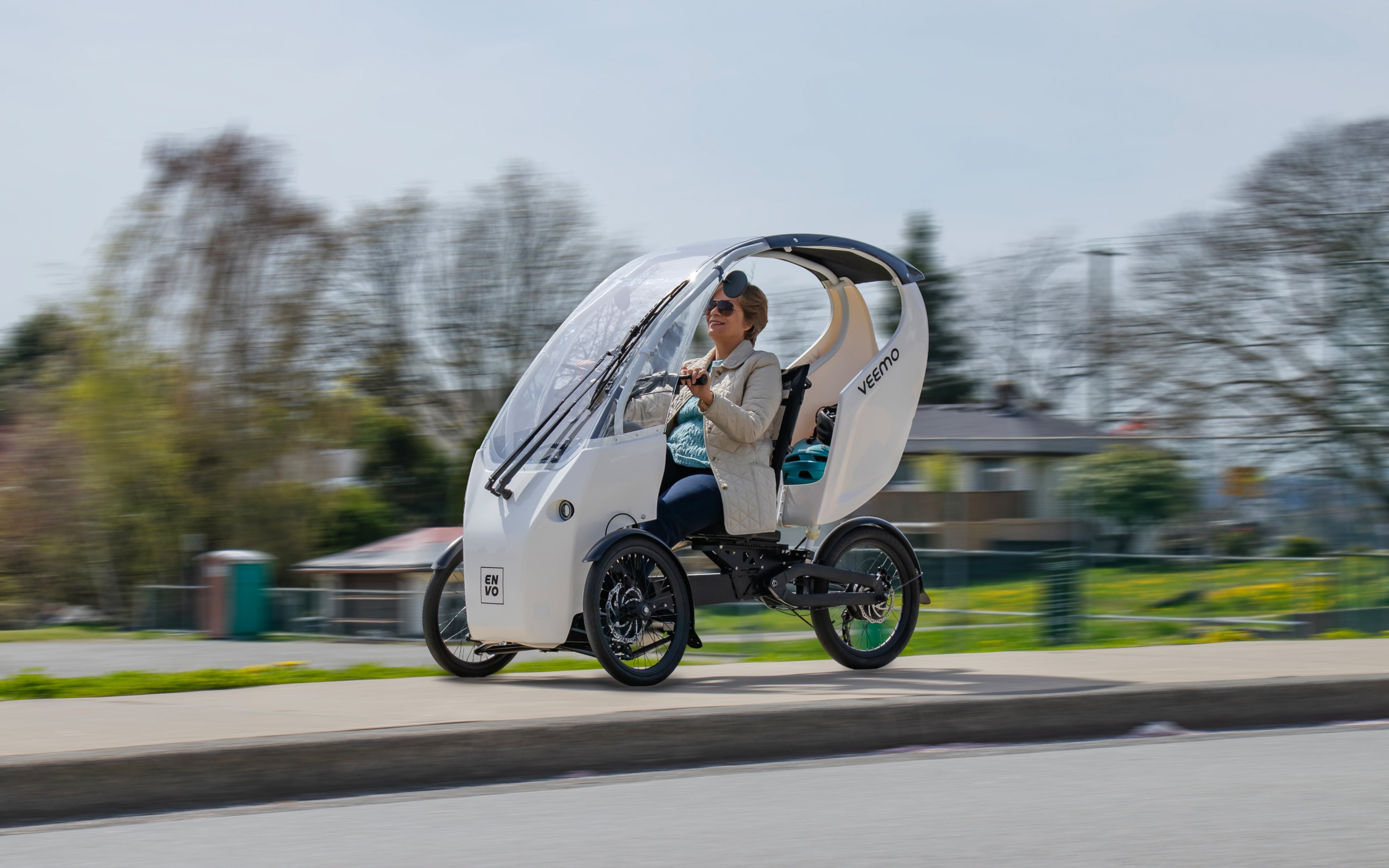 The Veemo by ENVO powertrain system motor, is a product born from years of Research & Development. This smooth, dynamic, elegant velomobile is the world's most practical utilitarian vehicle to get you from A to B on-time, every time. More importantly, it does so with zero-emissions for pennies on the dollar compared to driving a car. Our full-power ride mode delivers a great experience, whether you are headed up the road for groceries or using Veemo as your daily commuter.