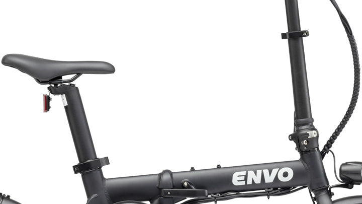 L'ENVO Lynx est construit avec un cadre en alliage d'aluminium solide, ultra léger, élégant et unisexe. Le cadre convient aux personnes de toutes tailles. Il est capable d'accueillir un cycliste pesant jusqu'à 300 lb et offre une forme ergonomique, ce qui facilite la montée et la descente du cycliste. Le cadre est spécialement conçu pour minimiser toutes les vibrations et le bruit du système d'entraînement, l'empattement optimisé pour la taille pliable la plus compacte tout en offrant une conduite agréable et à grande vitesse douce et stable sur les routes pavées et non pavées.