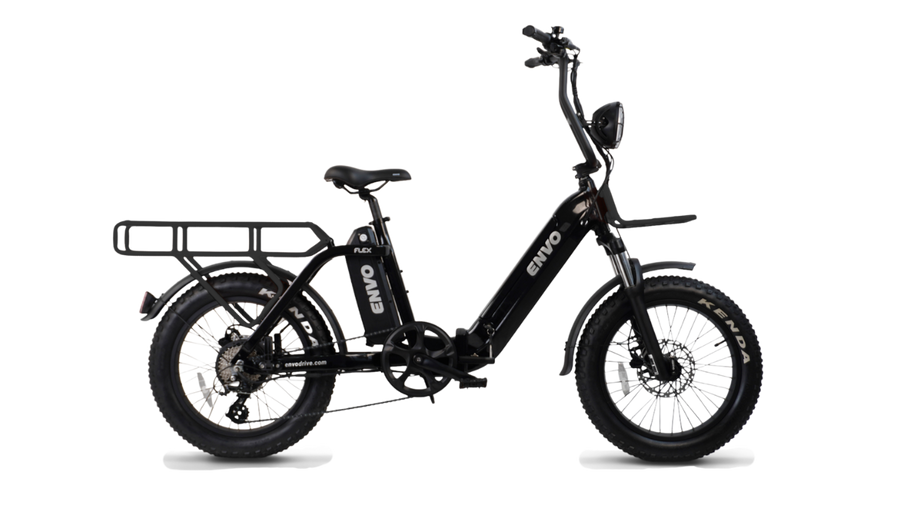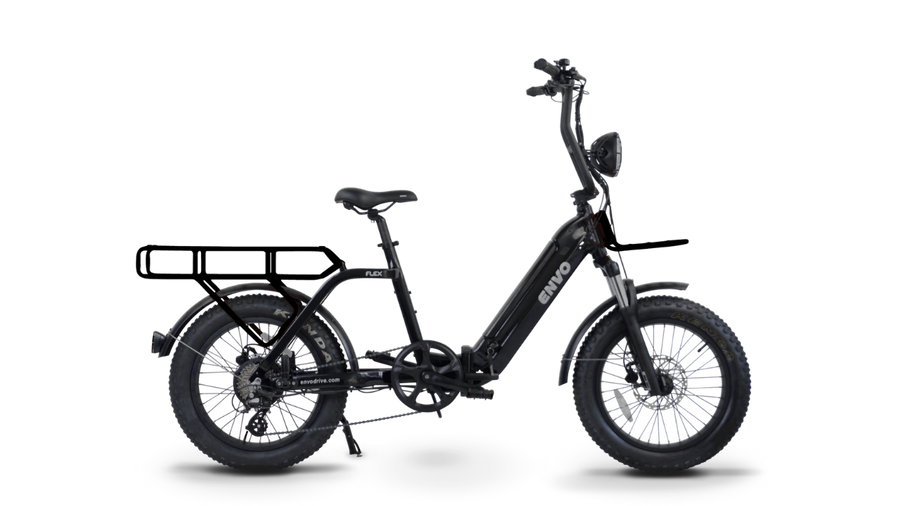 Designed in British Columbia, the Envo Flex Overland caters to North American riders' cargo mobility needs with its robust high-torque assist system, ensuring reliable performance on steep inclines. The bike comfortably accommodates two passengers, offering ample space for a second rider on its spacious rack. Additionally, it can be fitted with two child seats, allowing your children to join in on the adventure.