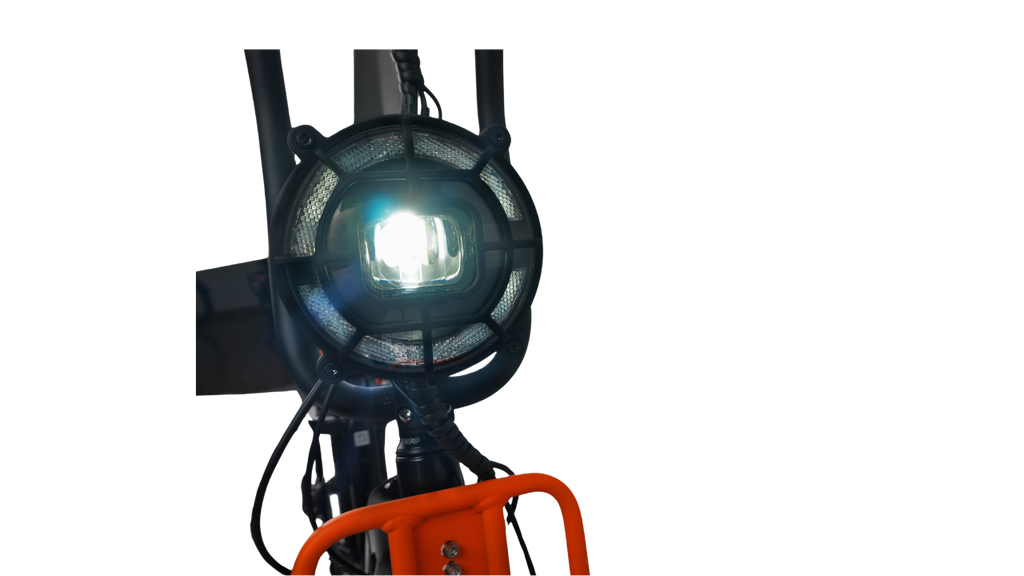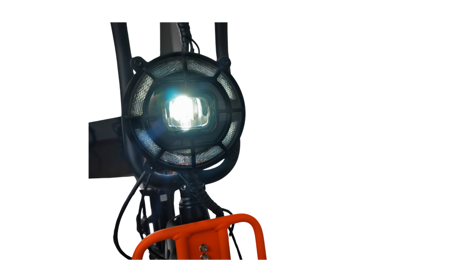 TheFLEX Overland is fitted with high efficiency and bright LED headlight powered by the main battery and controlled by a keypad on the handlebar.